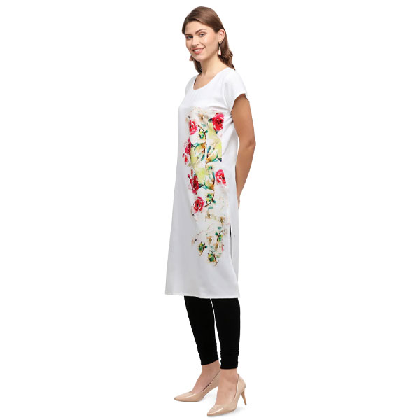 • grab this beautiful kurta made up of rayon fabric featuring round neck designs. """
