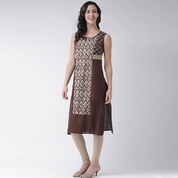 • product description : span women's brown cotton below knee kurta